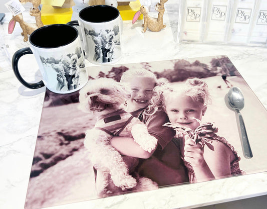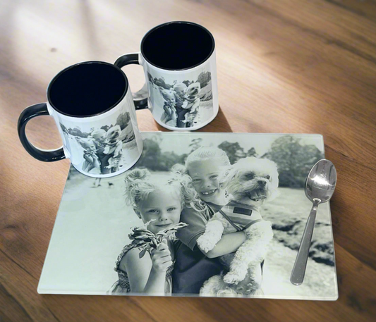 A4 Photo Smooth Chopping Board and 2 Photo Mugs Bundle