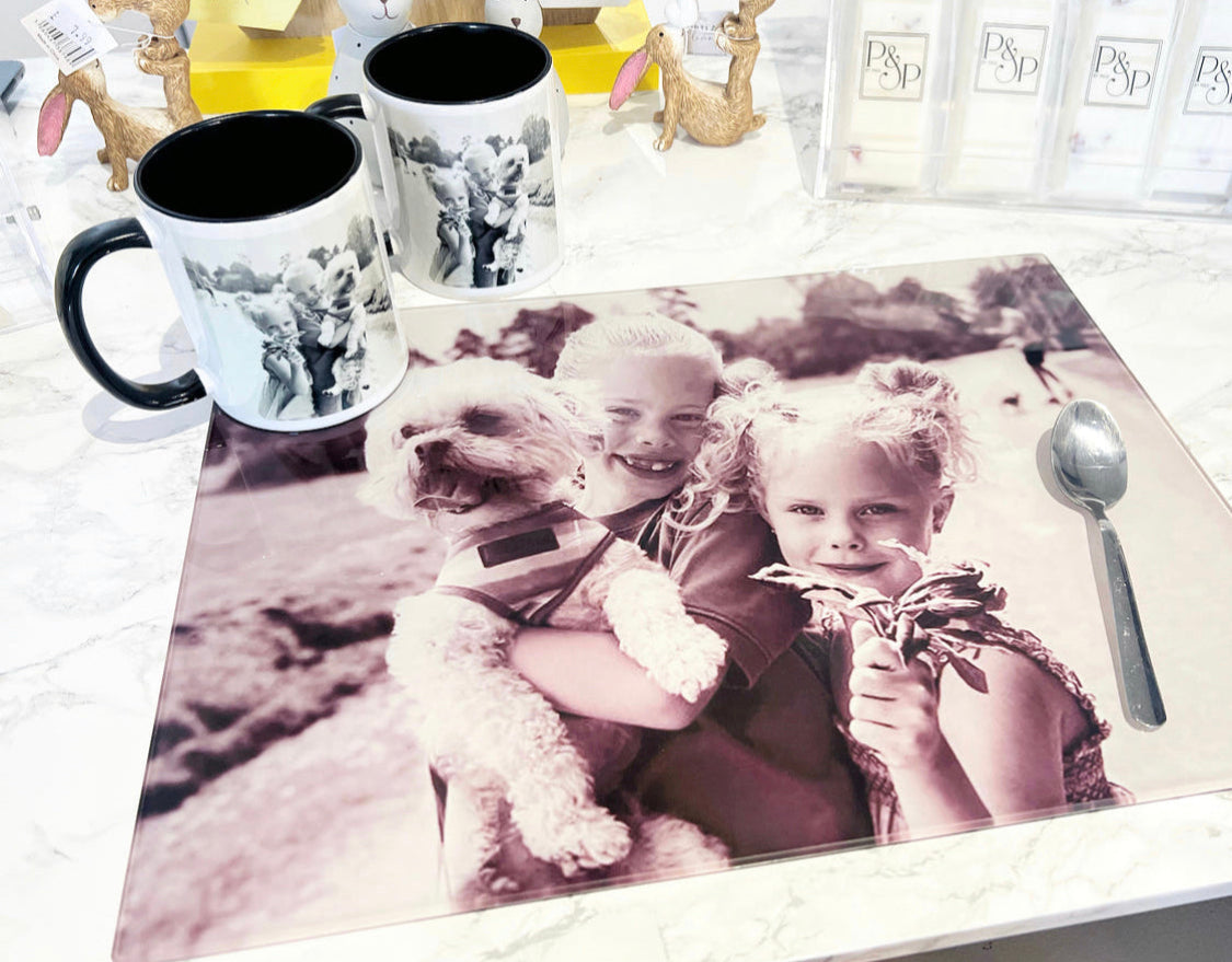 Material: Crafted from glass with the photo printed on the underside, ensuring the image remains protected during use.