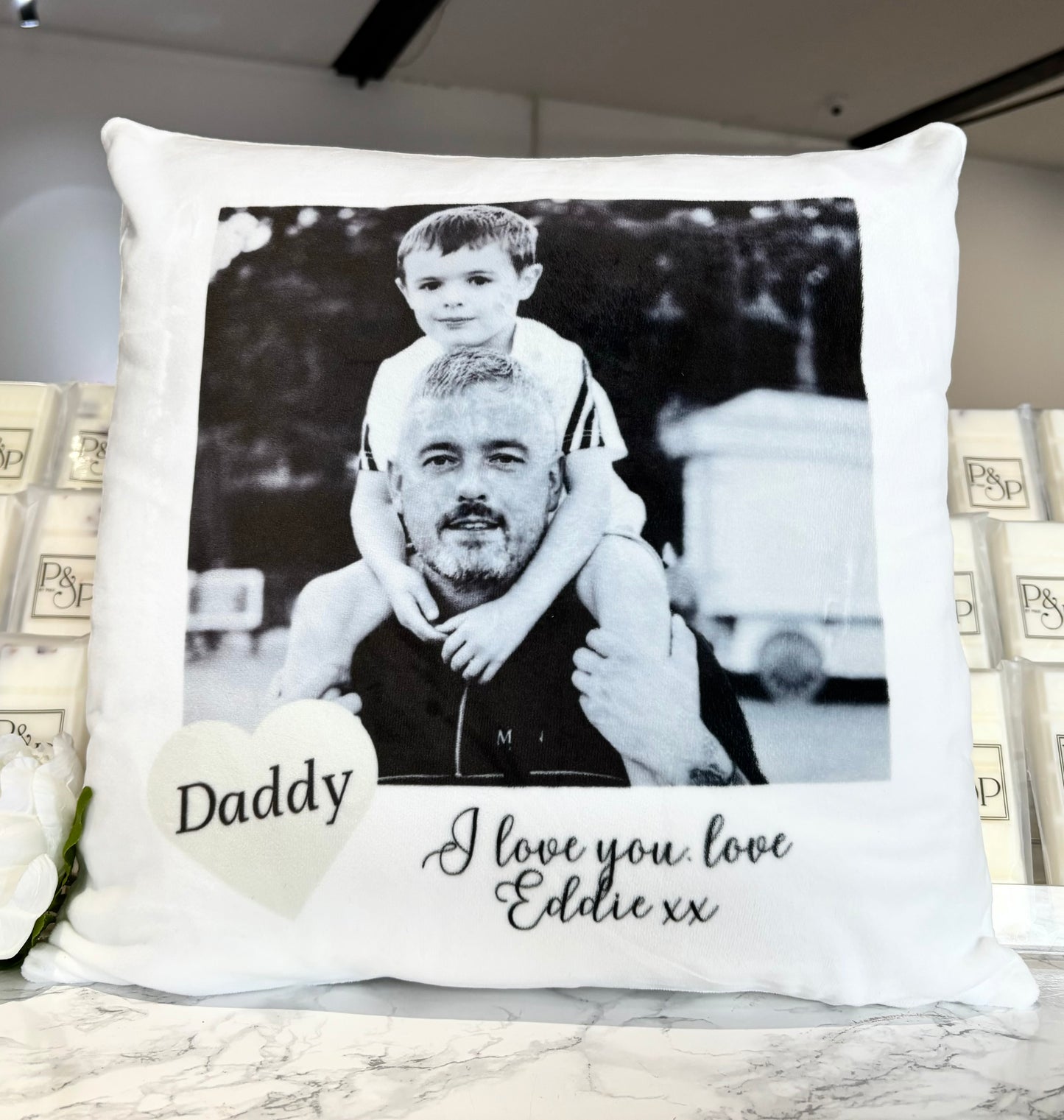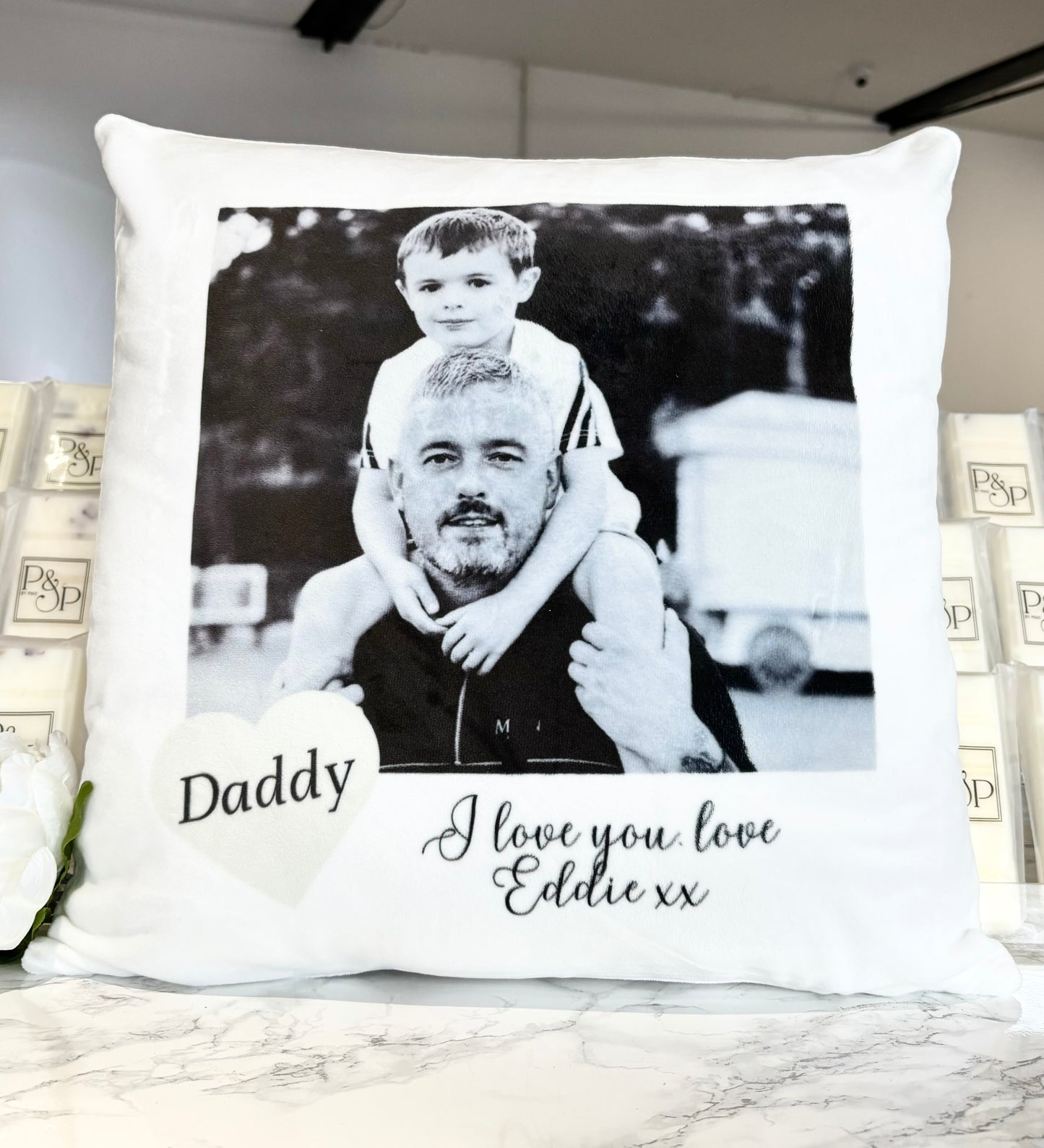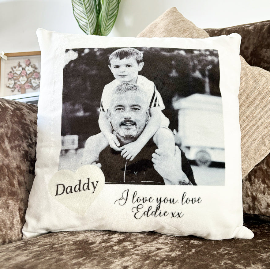 Please upload your image and then leave us the Names you would like written at the bottom, and what title you would like in the love heart. (the photo used is an example showing Daddy, but you can change this)
