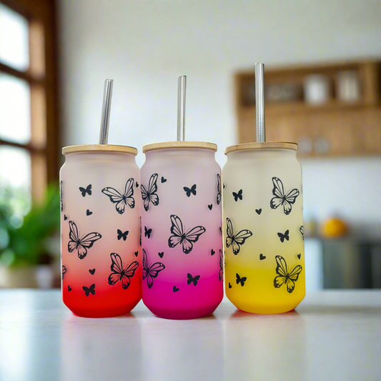 Neon Bow Frosted Glass Can 18oz Tumbler