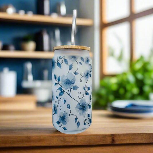Pumpkin / Halloween Floral Glass Can 18oz Tumbler