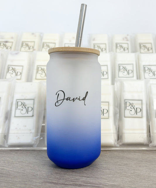 Neon Dark Blue Glass Tumbler Name Printed: David