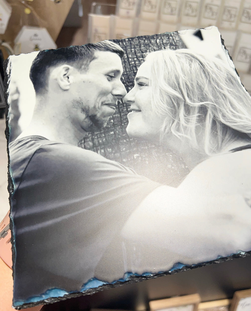 Please note: photos are printed on to natural slate as may have imperfections / little lumps/ surface marks/ and minor scuffs, as this is the cut of the natural slate please bare this in mind.