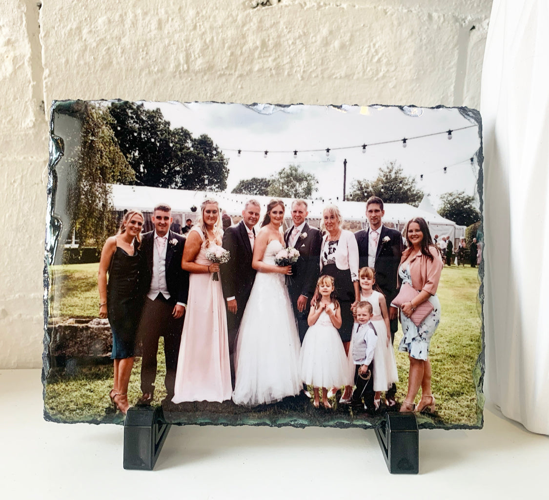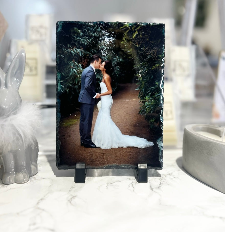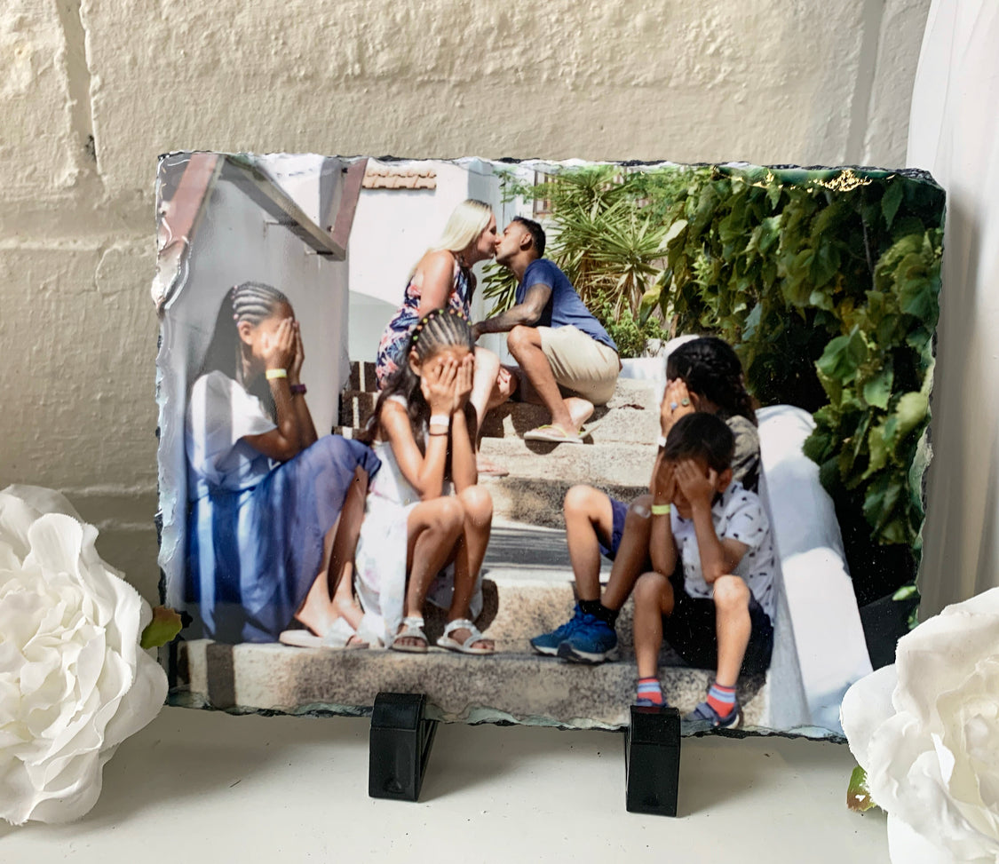 Please note: photos are printed on to natural slate as may have imperfections / little lumps/ surface marks/ and minor scuffs, as this is the cut of the natural slate please bare this in mind.