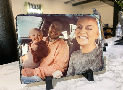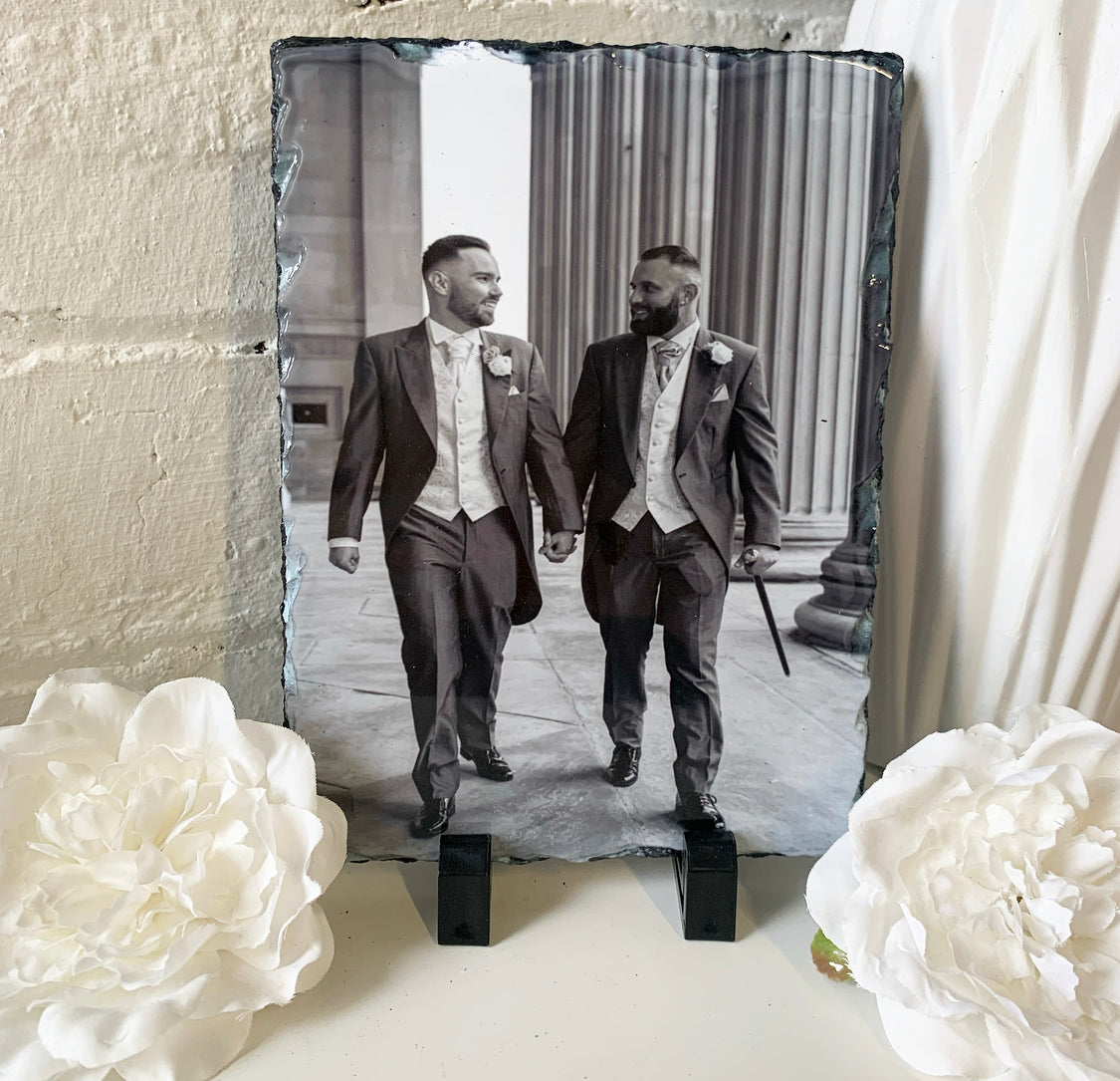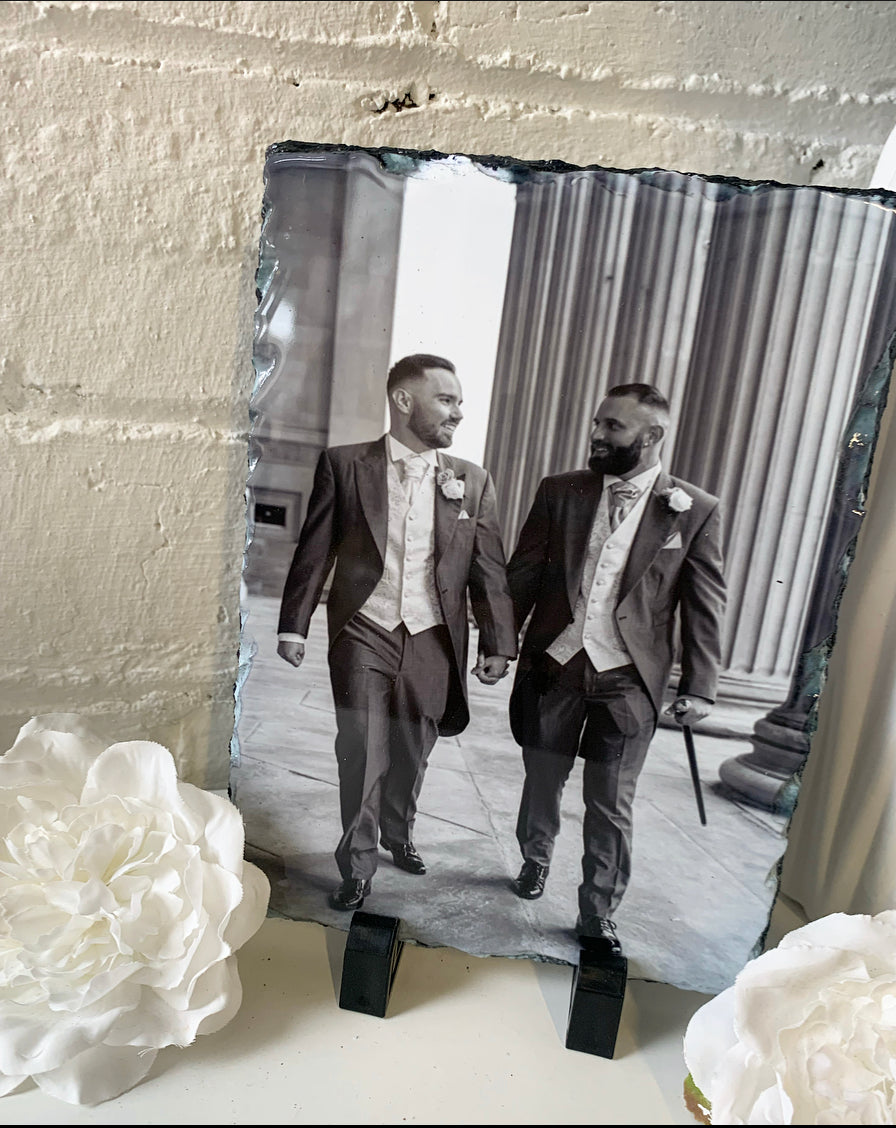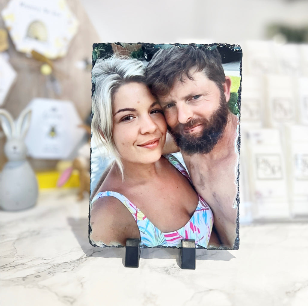 Please note: photos are printed on to natural slate as may have imperfections / little lumps/ surface marks/ and minor scuffs, as this is the cut of the natural slate please bare this in mind.