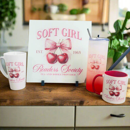 Soft girl Cherry Bundle: Splashback, 17oz Mug, 11oz Mug, Yellow Neon Glass Tumbler