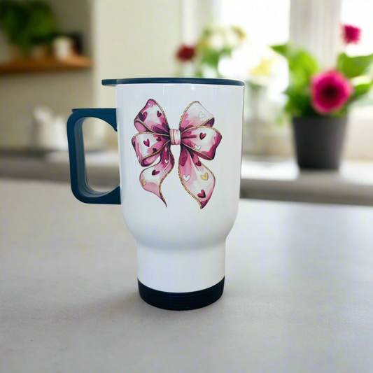 Travel Mug 14oz Blue Bow Design