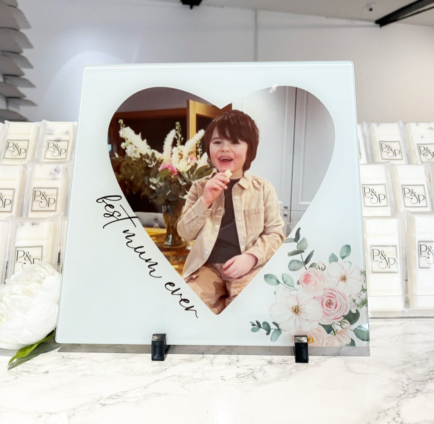 Do not leave your chopping board to soak for too long just a damp clean cloth to wipe the surface ( not the back or you may scratch the photo)