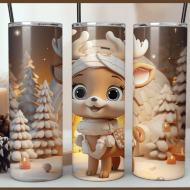 Cream Cute Reindeer Christmas Skinny Tumbler 600ml