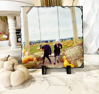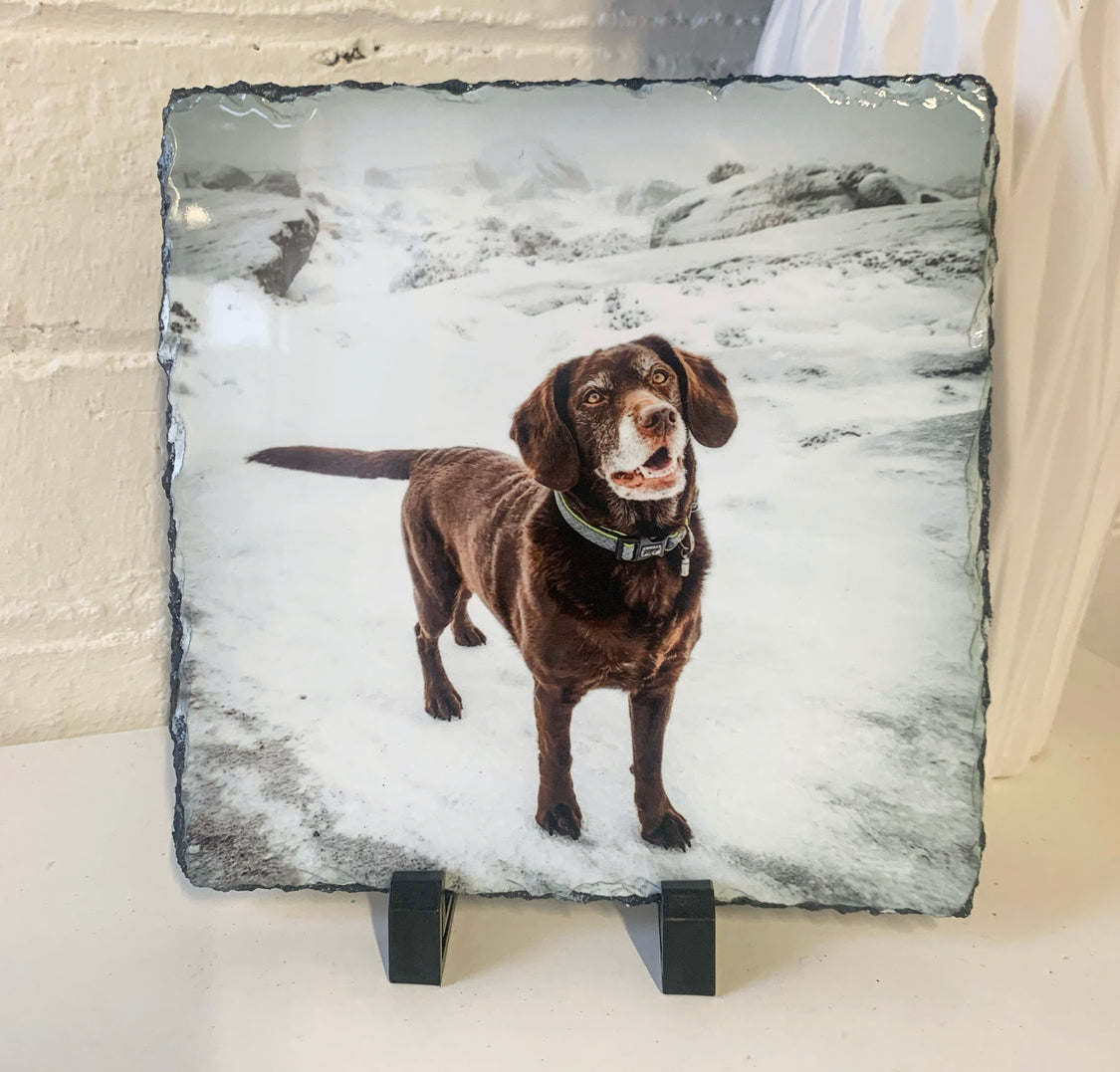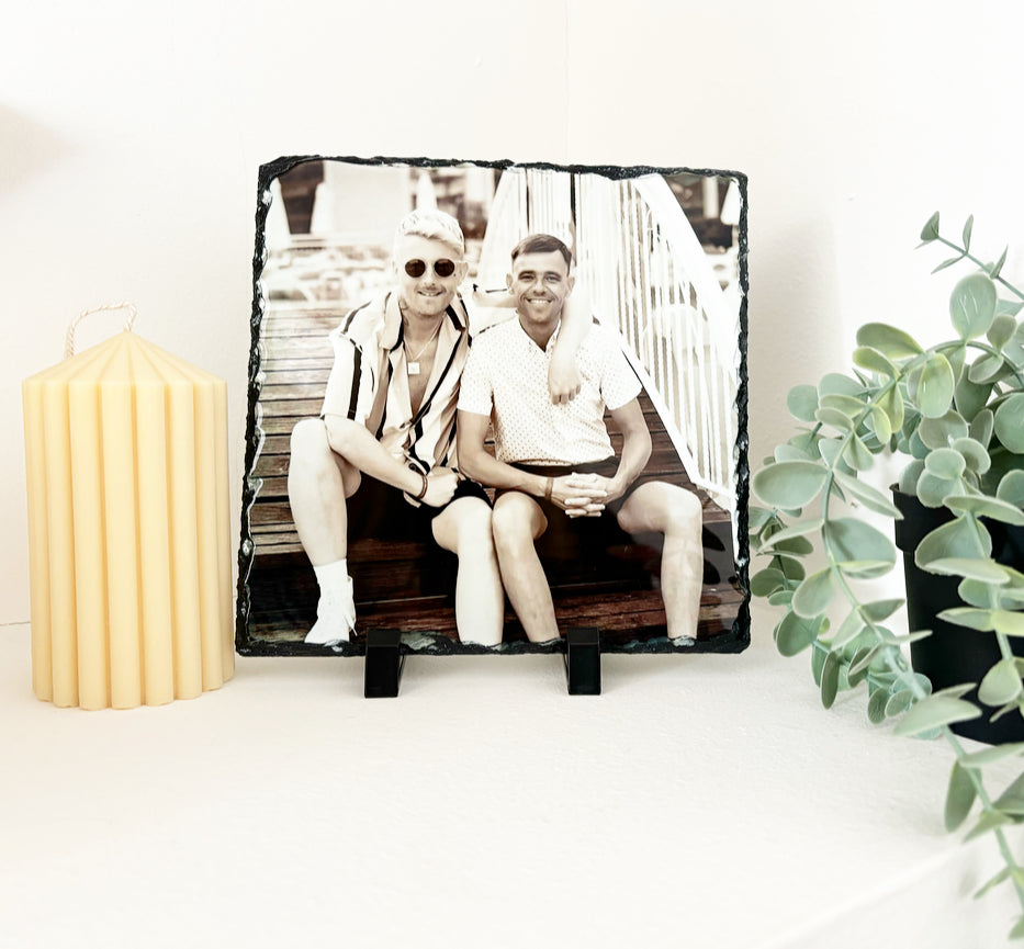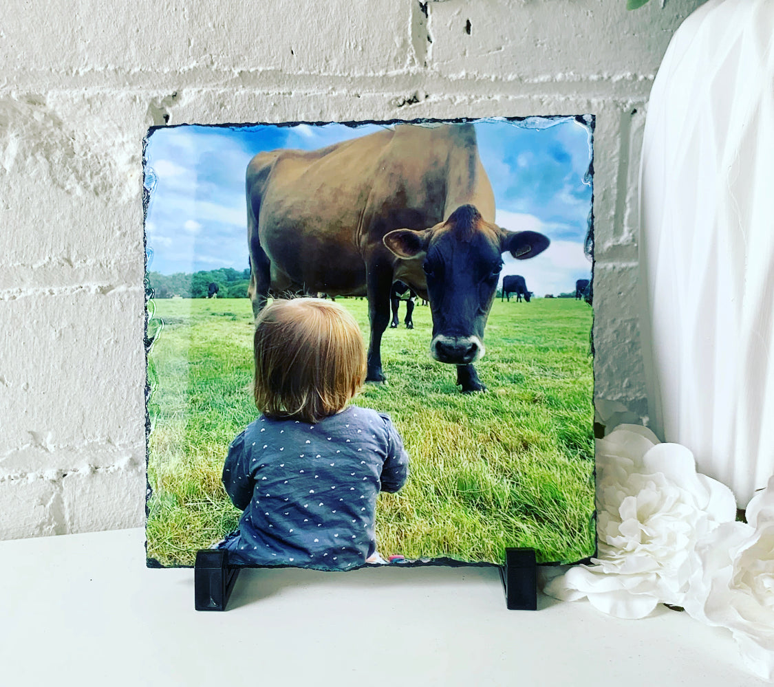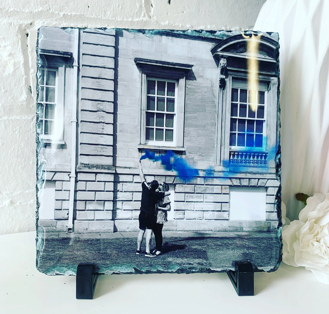 Please note: photos are printed on to natural slate as may have imperfections / little lumps/ surface marks/ and minor scuffs, as this is the cut of the natural slate please bare this in mind.