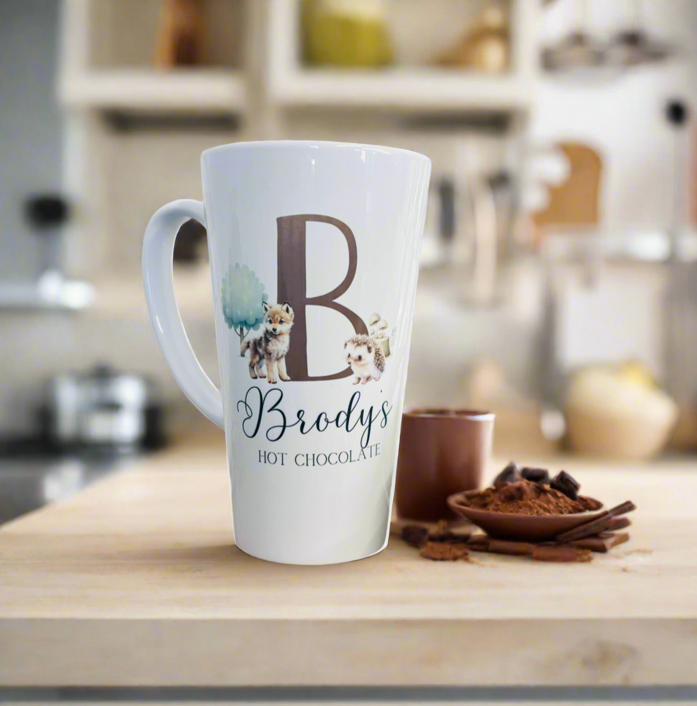 Initial Woodland Fox & Hedgehog Latte Ceramic Mug 17oz inc Box