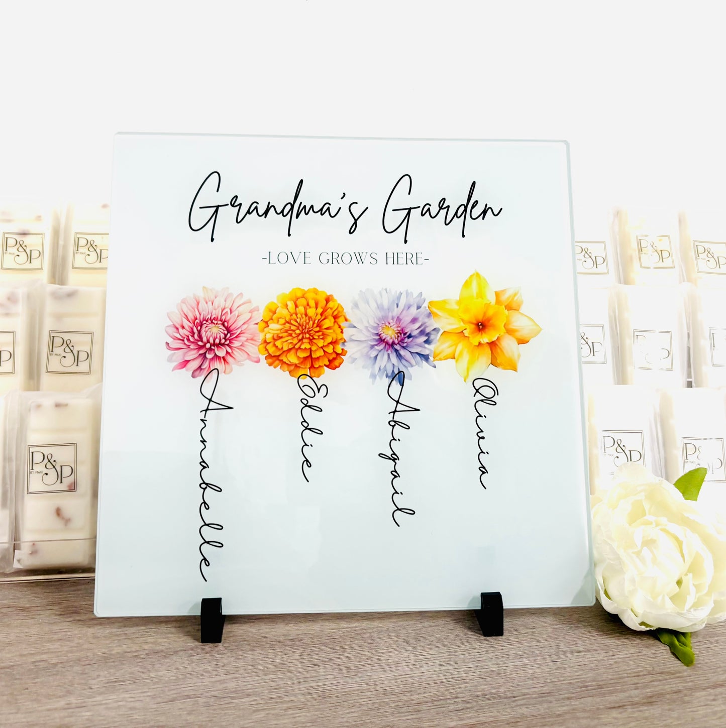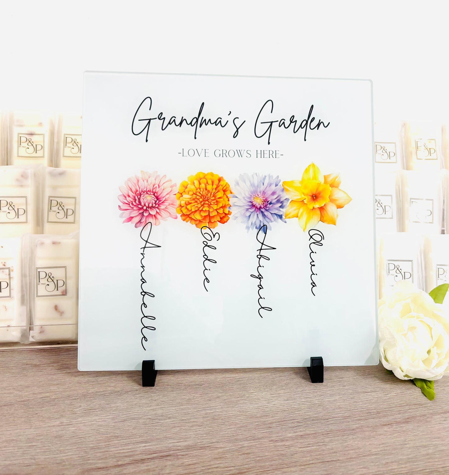 Love Grows Here 30cm Chopping Board / Splashback (Don’t forget to leave us the name for who’s Garden this is)