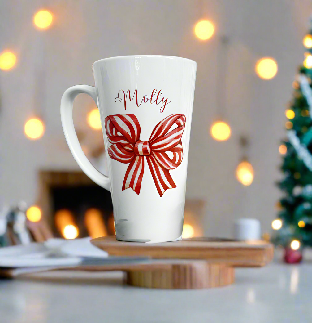 New Latte Ceramic Mug 17oz Red Christmas Bow inc Box