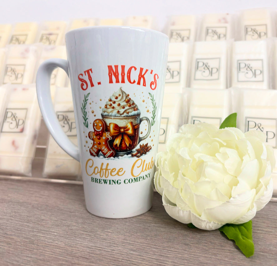 New Latte Ceramic Mug 17oz inc Box St. Nicks Coffee Club