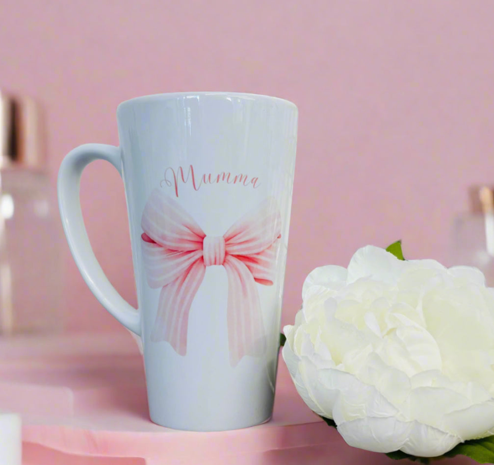 New Latte Ceramic Mug 17oz Pink Bow inc Box