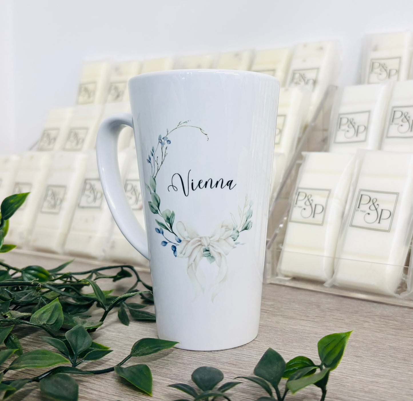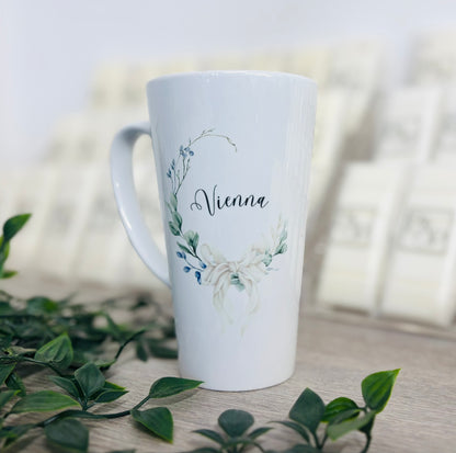 New Latte Half Wreath Ceramic Mug 17oz inc Box