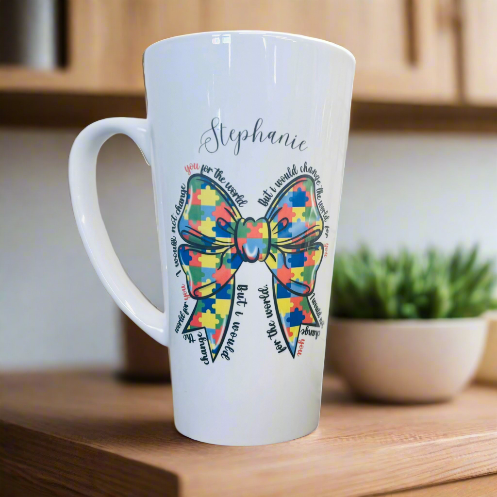 New Latte Autism/ Jigsaw Bow Ceramic Mug 17oz inc Box