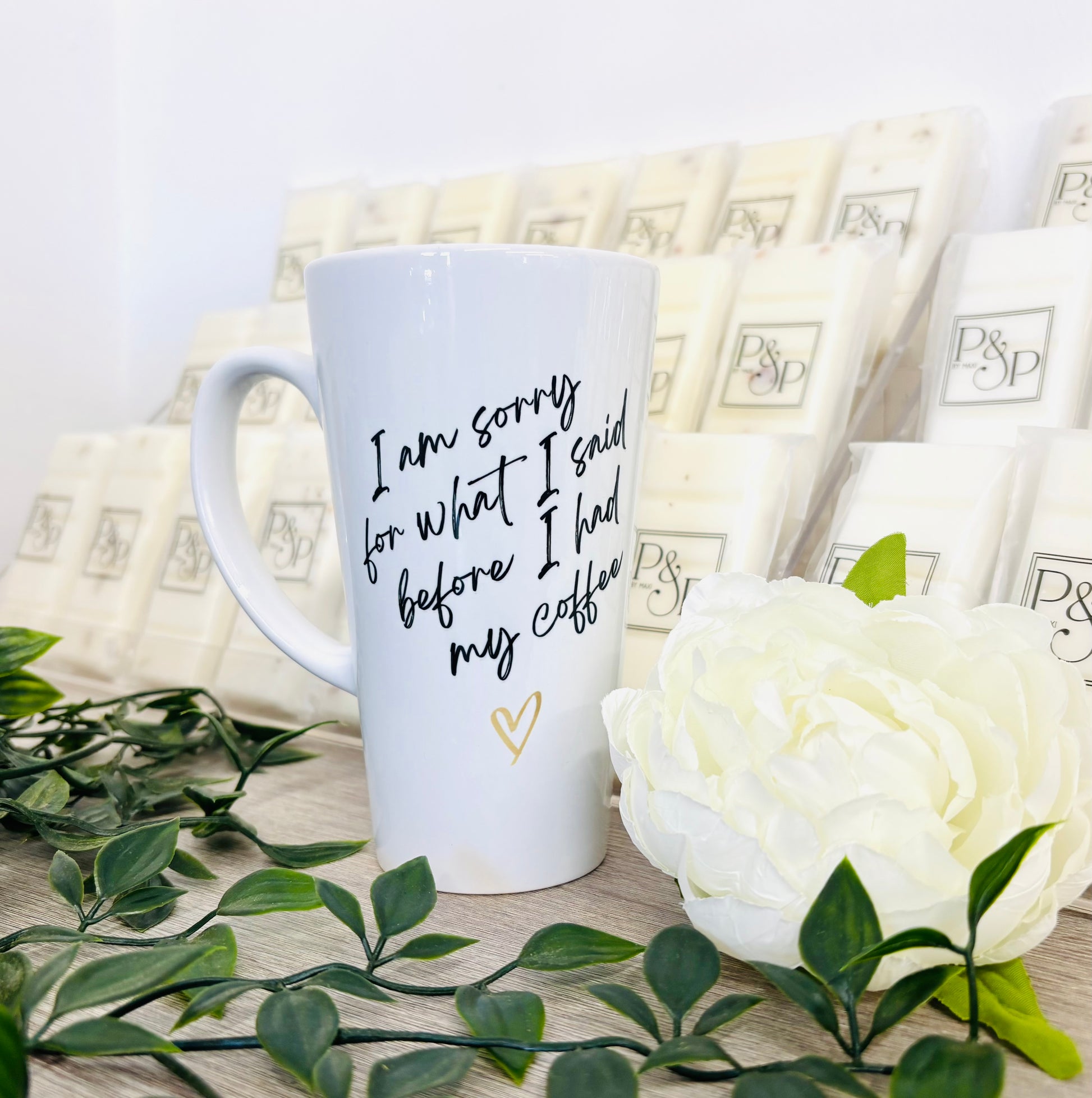 New Latte “Sorry for what i said before my coffee” Ceramic Mug 17oz inc box